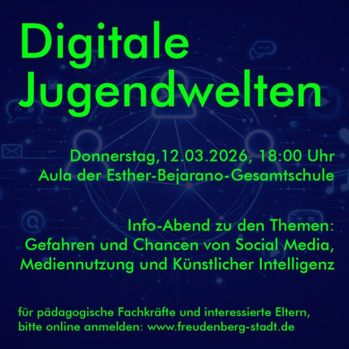 17. Februar 2026(wS/fr) Freudenberg 17.02.2026 | Die Stadtjugendpflege Freudenberg lädt am Donnerstag, den 12. März 2026 um 18:00 Uhr, zu einem Info-Abend über die digitalen...