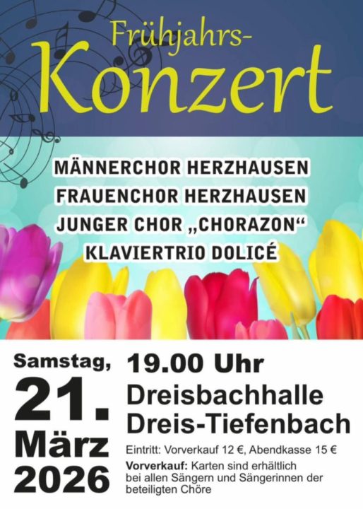 (wS/red) Netphen 26.02.2026 | Am Samstag, 21. März 2026, lädt ein musikalisches Gemeinschaftsprojekt zu einem besonderen Frühlingskonzert in die Dreisbachhalle in Dreis-Tiefenbach ein....