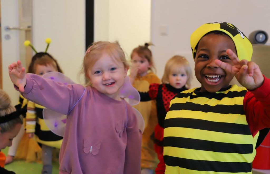 Schmetterlings- und Bienenkostüme waren der Hit der U-3-Gruppen. Emma und Pharell machen´s vor.
