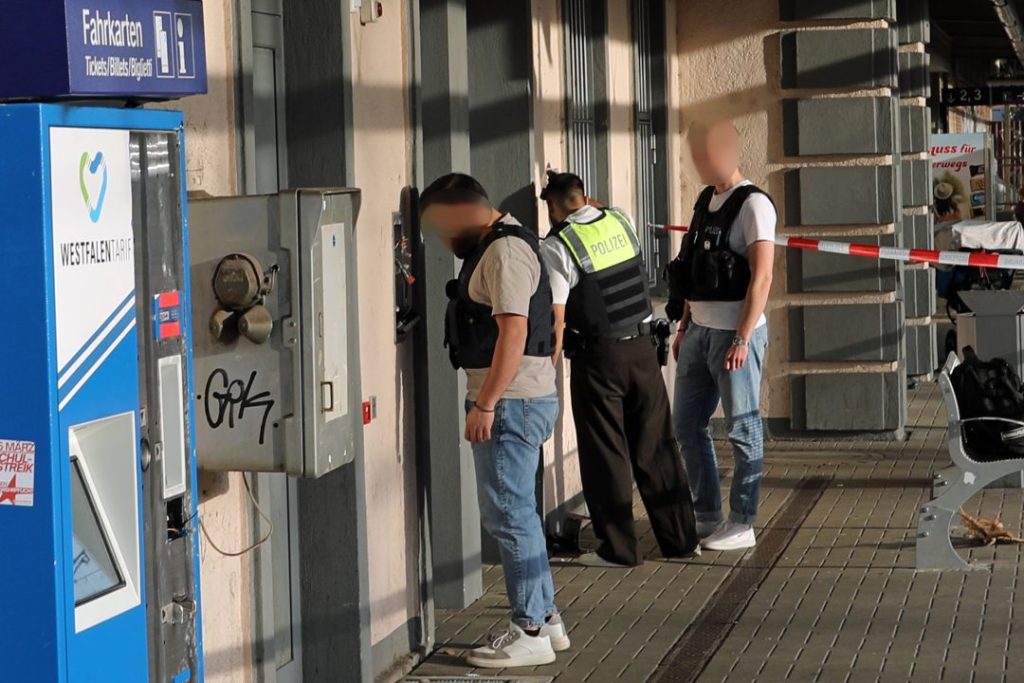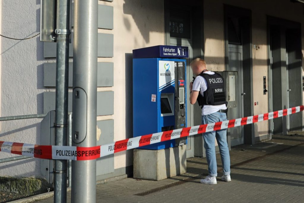 Dabei wurde unter anderem ein Fahrkartenautomat am Bahnhof aufgebrochen. An dem blau verkleideten Automaten, der normalerweise für den Kauf von Tickets im Westfalentarif genutzt wird, wurde die Front im Bereich der Bezahltechnik gewaltsam geöffnet. Dort befinden sich üblicherweise unter anderem der Kartenleser, der Münzeinwurf sowie die Technik für die Bargeldannahme. Teile der Metallverkleidung wurden herausgerissen, sodass das Innenleben des Automaten teilweise freilag.