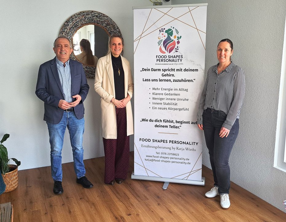 Seit Februar ist die 43-Jährige in ihrer Praxis „Food Shapes Personality“ an der Vorderen Insbach 6 in Hilchenbach anzutreffen. Bürgermeister Kyrillos Kaioglidis und Wirtschaftsförderin Martina Hamann haben sie dort jetzt willkommen geheißen.