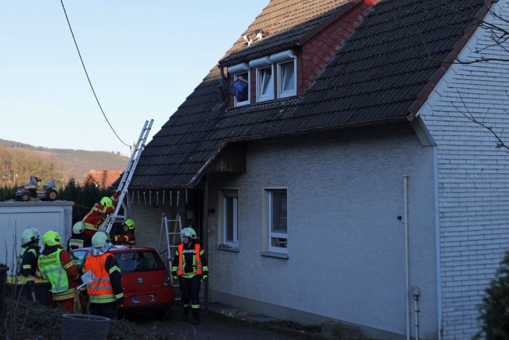 (wS/red) Kreuztal 02.03.2026 | Ein leises, aber eindringliches Miauen durchbrach am späten Nachmittag die Ruhe in der Gutshofstraße in Fellinghausen. Der Grund: Eine Katze hatte sich auf das steile Dach eines Wohnhauses verirrt – und kam aus eigener Kraft nicht mehr herunter. Gegen 16:50 Uhr wurde die Feuerwehr alarmiert, denn aus dem neugierigen Ausflug war plötzlich eine gefährliche Lage geworden.