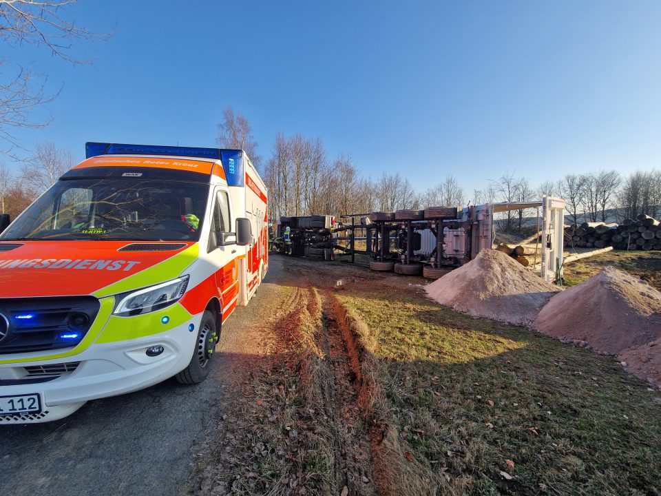Lkw-Unfall am Flugplatz Schameder – Fahrer schwer verletzt – RTH im Einsatz
