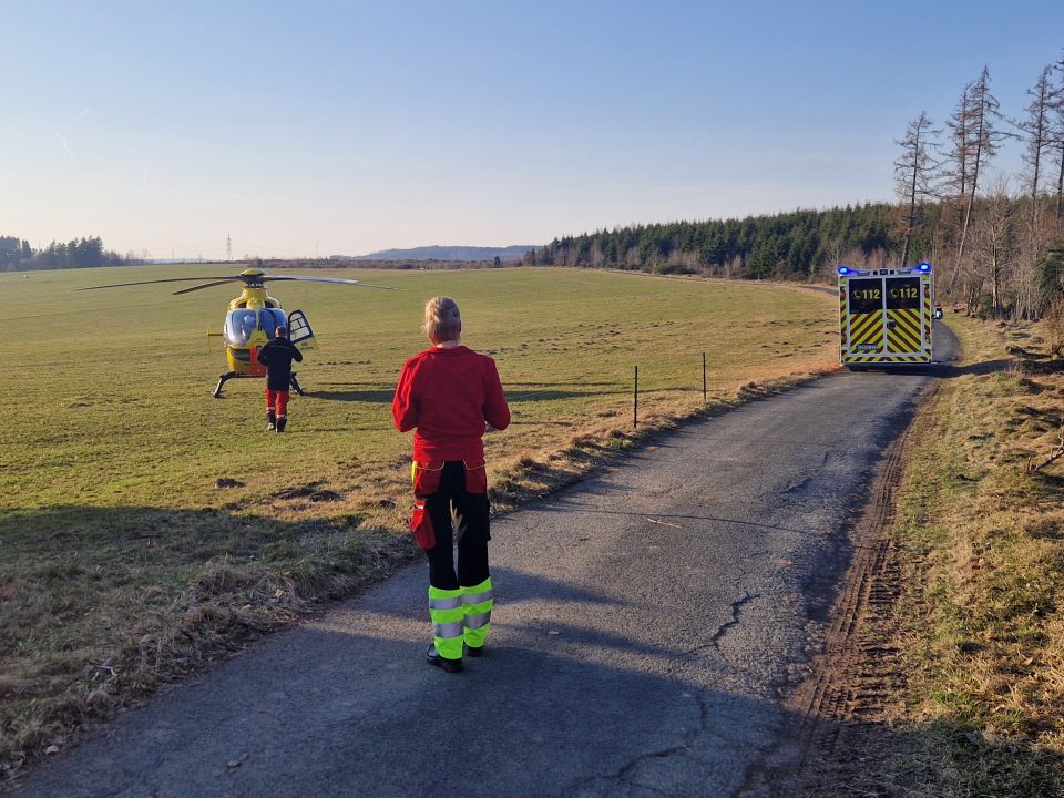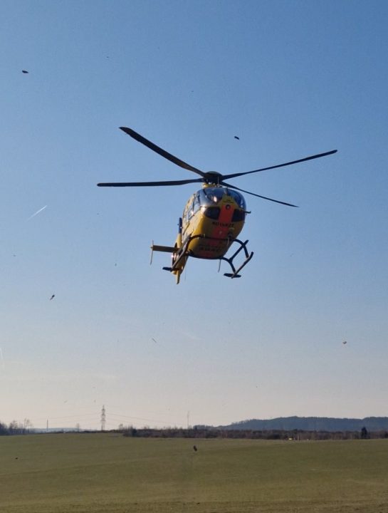 Nach der Erstversorgung vor Ort wurde der 41-jährige Fahrer mit dem Rettungshubschrauber „Christoph 25“ in ein Krankenhaus geflogen. Insgesamt waren rund 40 Einsatzkräfte der Feuerwehr im Einsatz.