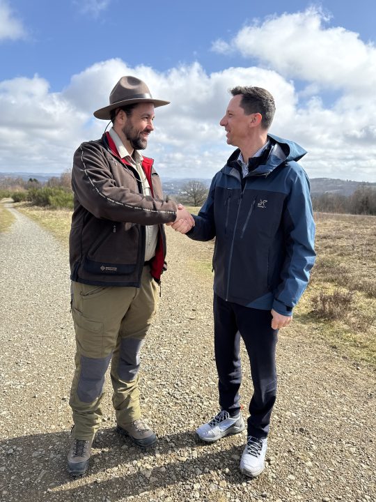 Gemeinsam mit Landrat Andreas Müller auf der Trupbacher Heide: Frédéric Rock (li.) ist der neue Urbane Ranger für Siegen-Wittgenstein. Foto: Kreis Siegen-Wittgenstein