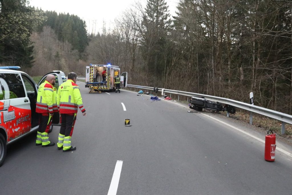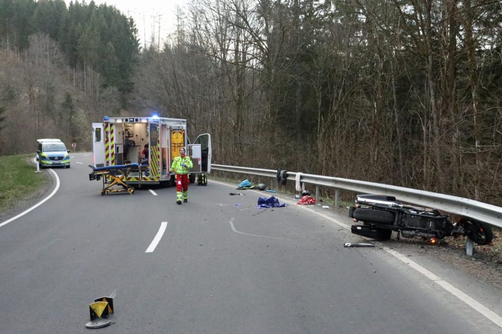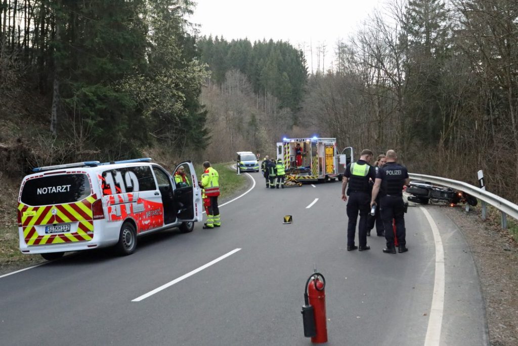 Der Fahrer erlitt dabei schwerste Verletzungen, während die Sozia schwer verletzt wurde. Beide mussten umgehend medizinisch versorgt werden. Auch mehrere Ersthelfer standen unter dem Eindruck des Geschehens und wurden vor Ort durch Rettungskräfte sowie die Notfallseelsorge betreut.