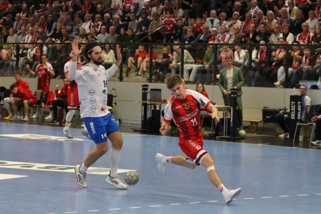 Es entwickelte sich ein etwas wildes Spiel, in dem zunächst Goalgetter Nico Schnabl glänzte und immer dann da war, wenn es nötig erschien. So beim 16:16 und auch beim 17:17, gefolgt von einem Siebenmetertor von Josip Eres zum 18:18.