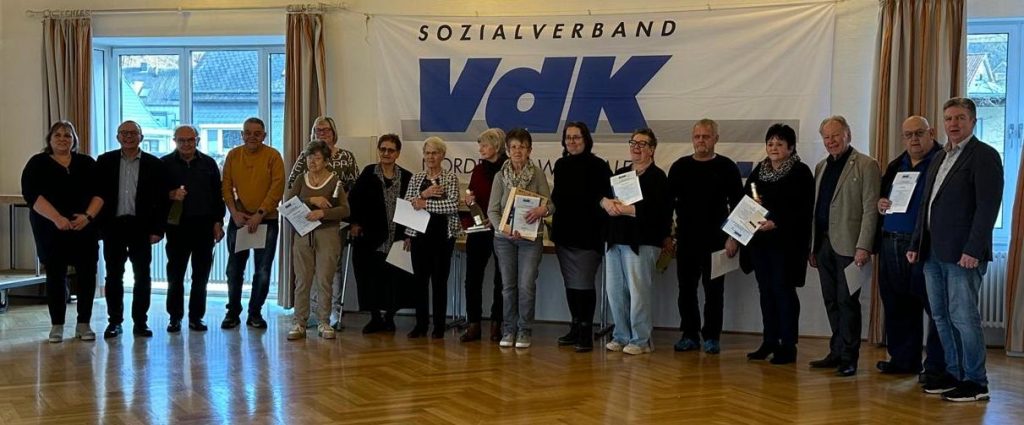 Ein Höhepunkt der Versammlung war die Ehrung verdienter Mitglieder. Insgesamt wurden 34 Personen für 10 jährige sowie 21 Mitglieder für stolze 25-jährige Treue zum Sozialverband ausgezeichnet. Nach der Überreichung der Urkunden und Ehrenzeichen wurden im Rahmen der Veranstaltung auch zwei langjährige Mitglieder aus dem Vorstand verabschiedet. Gerhard Heinz legte sein Amt als Kassenprüfer nieder, dass er seit 2013 mit großer Sorgfalt ausgeübt hatte.