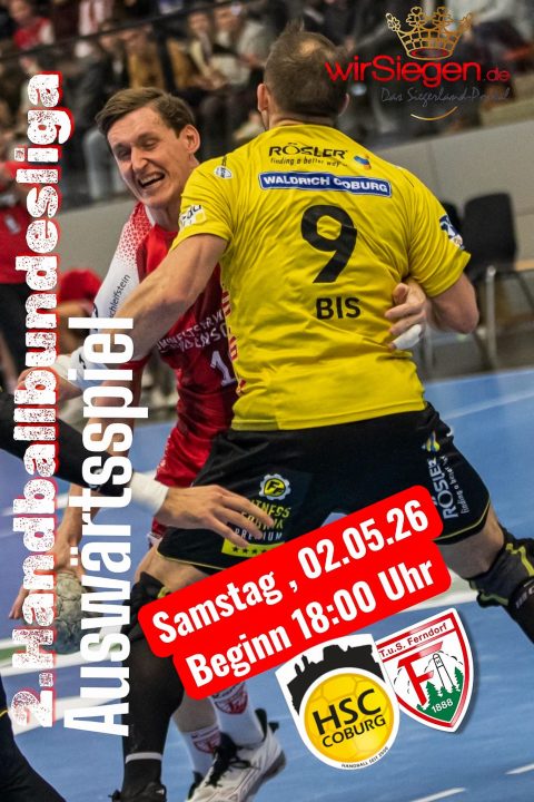 Anwurf ist am Samstag, 02.05.26 um 18:00 Uhr in der HUK-Coburg-Arena im Hahnweg 72, 96450 Coburg.