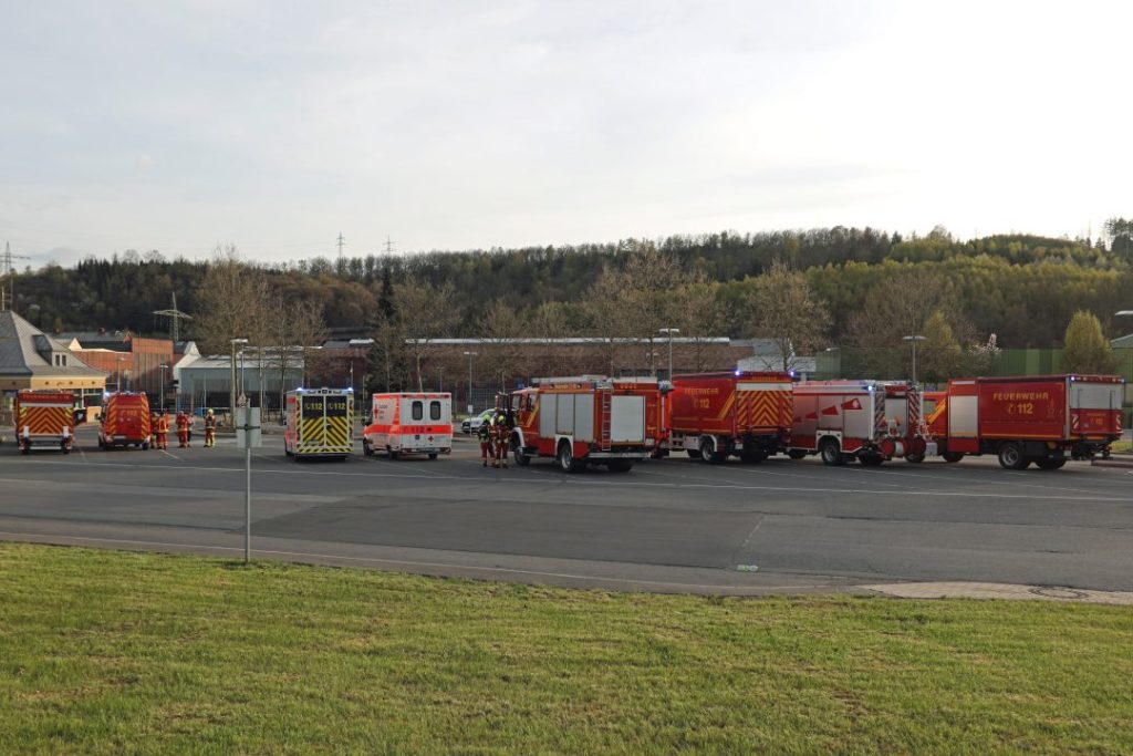 Bereits kurz nach dem Eintreffen der ersten Einsatzkräfte konnte jedoch vorsichtige Entwarnung gegeben werden. Während sich ein Großteil der alarmierten Einheiten auf dem Parkplatz an der Hagener Straße in Bereitstellung begab, erkundeten die ersten Trupps gemeinsam mit der Polizei die Lage auf dem Werksgelände.