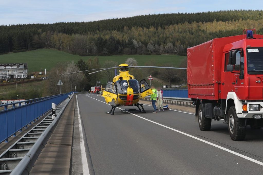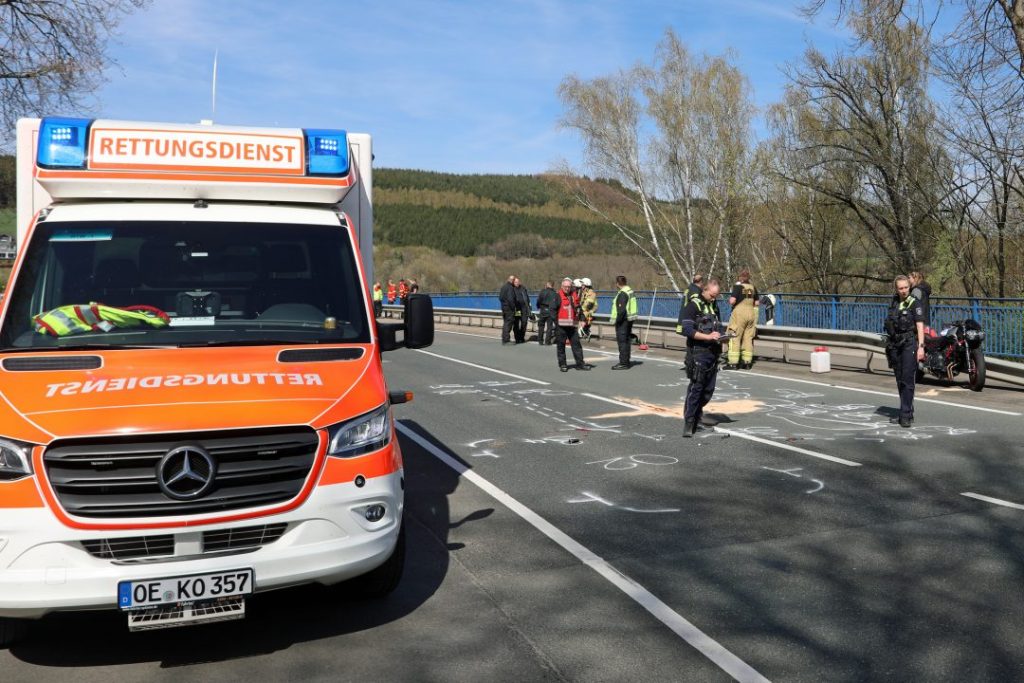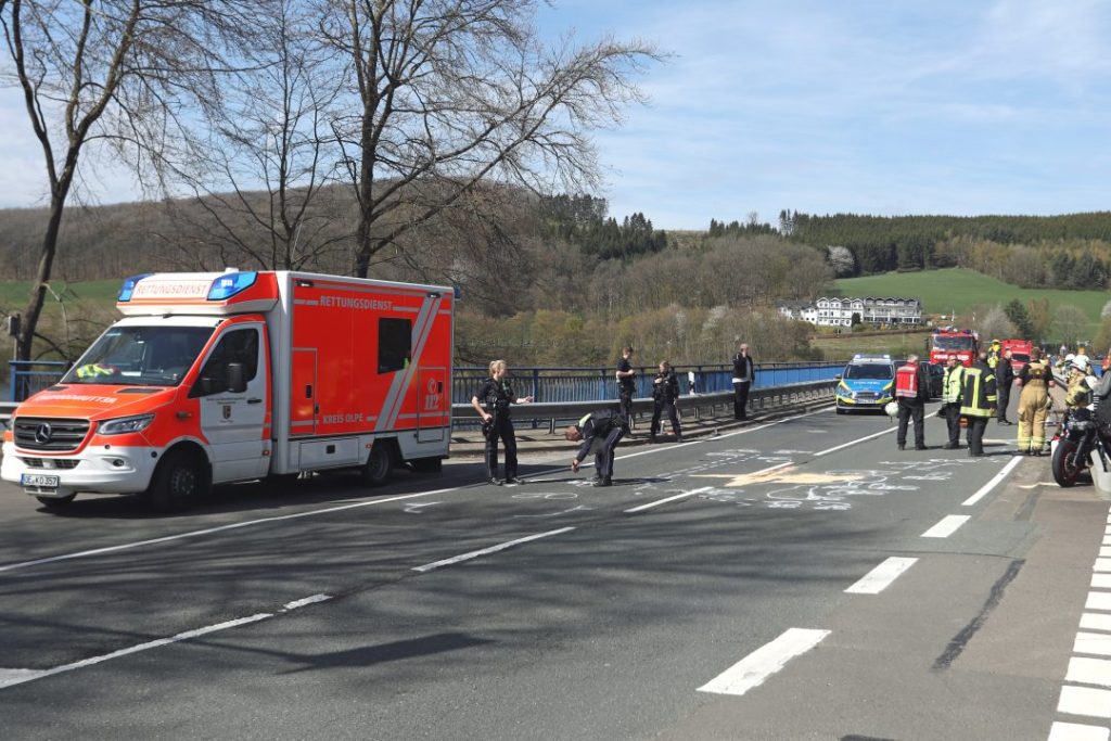 (wS/red) Attendorn 11.04.2026 | Ein dramatischer Verkehrsunfall am Samstagnachmittag forderte den Einsatz massiver Rettungskräfte am Biggesees. Eine 33-jährige Motorradfahrerin wurde schwerst verletzt.