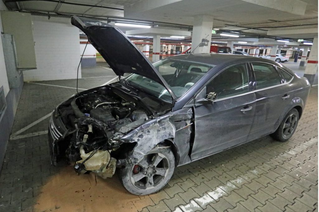 Anstatt die Polizei zu verständigen oder am Unfallort zu verbleiben, setzte der Fahrer seine Fahrt fort. Er steuerte den völlig demolierten Ford in Richtung Roter Platz und stellte ihn schließlich in der Rathaus-Tiefgarage ab. Diese Fahrt blieb jedoch nicht unbeobachtet und war zudem leicht nachzuverfolgen: Das Fahrzeug verlor durch die schweren Beschädigungen massiv Betriebsmittel und zog eine unübersehbare Spur vom Unfallort bis in die Tiefgarage.