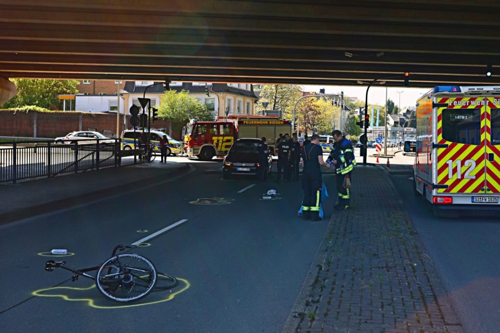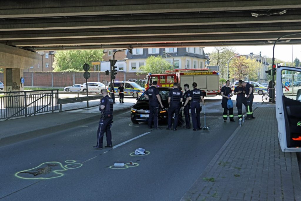 (wS/red) Siegen 25.04.2026 | Zu einem schweren Verkehrsunfall zwischen einem Pkw und einem Rennradfahrer kam es am heutigen Nachmittag gegen 15:30 Uhr auf der Weidenauer Straße in Höhe der HTS-Unterführung. Der 55-jährige Radfahrer wurde dabei schwer verletzt und musste nach notärztlicher Erstversorgung mit dem Rettungswagen in ein Krankenhaus gebracht werden.