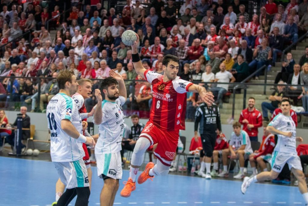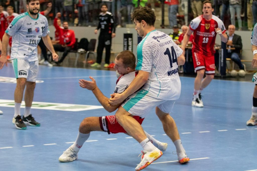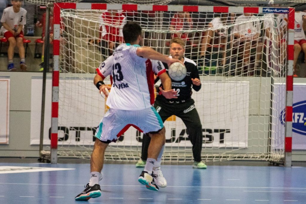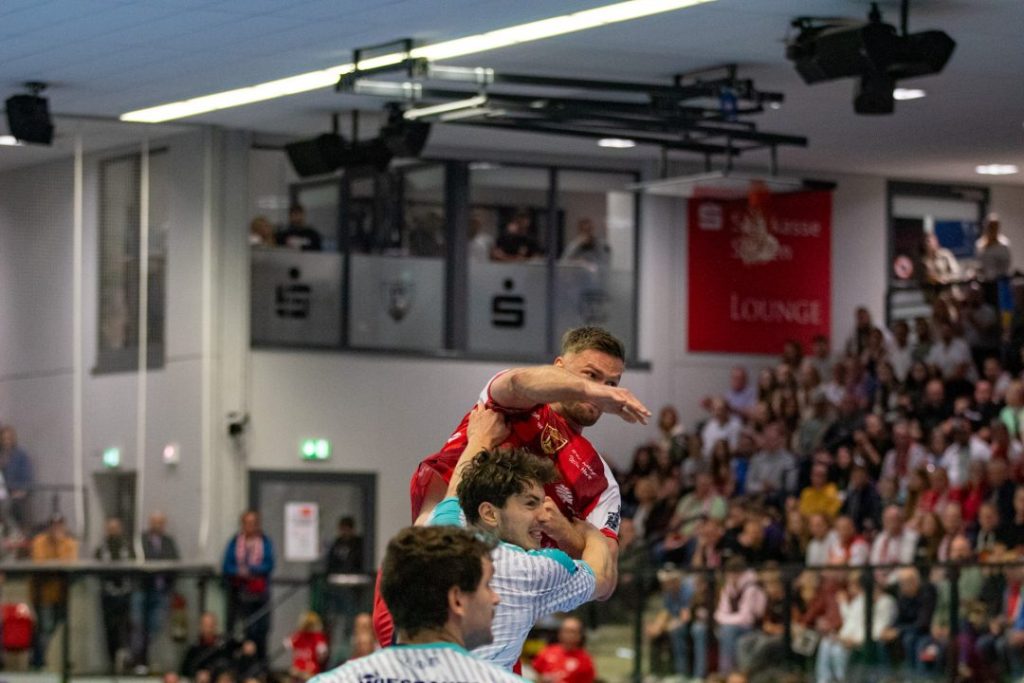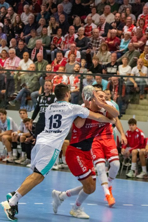 Über ein 18:14 und 22:18 kam man in die 44. Minute, die Wurfqualität ließ etwas nach, vielleicht waren es auch die Kräfte und die Konzentration, egal wie, in der 47. Minute stand es nur noch 23:21. Und trotzdem muss man auch hier wieder sagen, unsere Jungs haben das Letzte gegeben, sie waren nicht wiederzuerkennen. Jetzt kam ein Knackpunkt ins Spiel, Julius Fanger verließ das Spielfeld und Hendrik Stock kam für ihn rein, er hatte direkt einen technischen Fehler und verlor den Ball und die SG BBM ließ sich nicht zweimal bitten, nur noch 23:22, danach rettete ihn nach einem weiteren Fehler Daniel Hideg. Weiter geht’s, 49. Minute, der exakt gleiche Fehler passiert Hendrik nochmal und Zack, da war das 23:23. Es war das erste Remis, der Gegner klopfte leise an und nun hieß es Nerven bewahren, denn dieser Gegner war keine Laufkundschaft, es ist der Erstligaabsteiger, der sich anschickt, direkt wieder aufzusteigen und mit Spielerlegende Iker Romero sollte ihnen das auch gelingen.